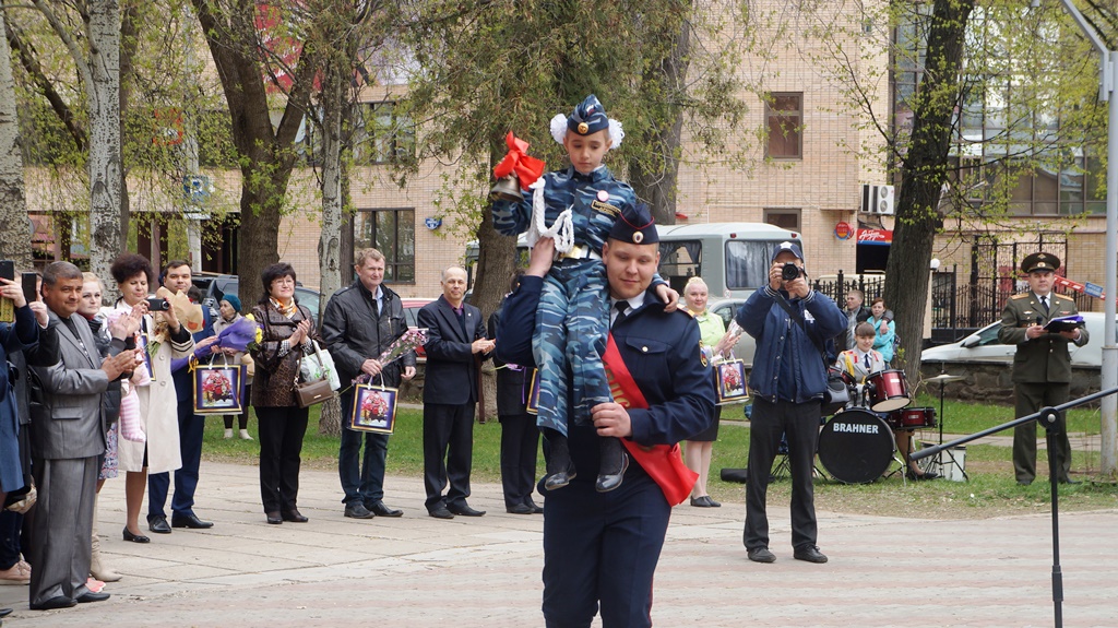 В своём выступлении председатель совета ветеранов управления уголовного розыска Г.П. Сериков пожелал детям смело добиваться поставленной цели, идти через все трудности к своей мечте, совершенствоваться и не забывать своих учителей, поблагодарил руководителя школы Н.В. Ивонину и вручил ей от имени президента фонда «Прикамье» букет цветов.